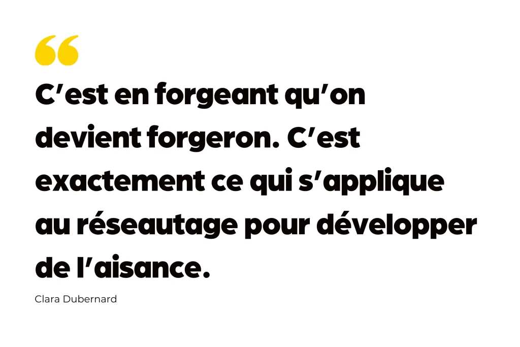 Pour Clara, le réseautage n’a rien d’un exercice de performance. C’est avant tout une rencontre entre humains. Une façon d’aller vers l’autre avec curiosité, bienveillance et écoute.
